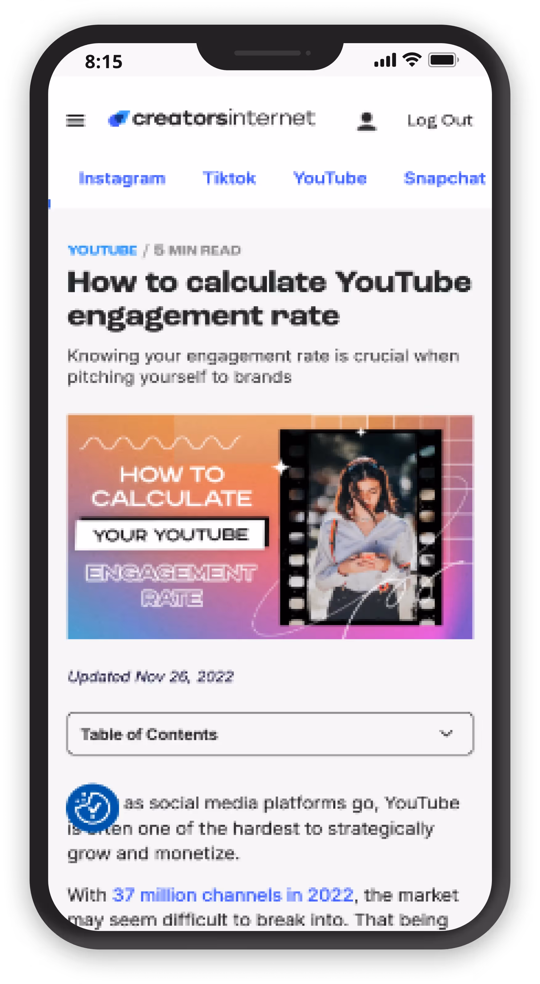 The blog, “Creators Internet,” published advice articles for social media content creators — from “How to Calculate Your YouTube Engagement Rate” to “5 Ways to Reduce Anxiety While Waiting on New Brand Deals.”